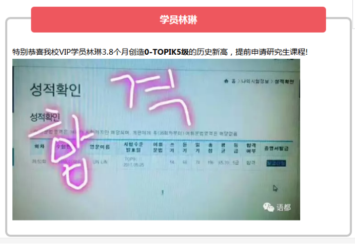 恭喜林琳3.8个月,0基础到韩语TOPIK5级