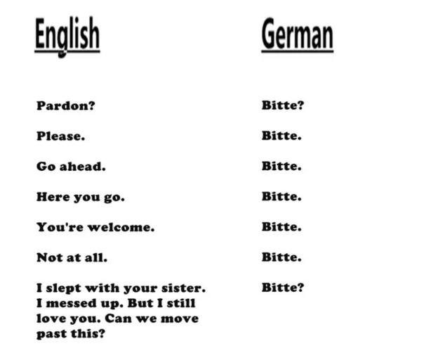 上图是一个小小的玩笑啦。事实上,无论你想表达“不客气”还是“请求”都可以使用“Bitte”这个词。
