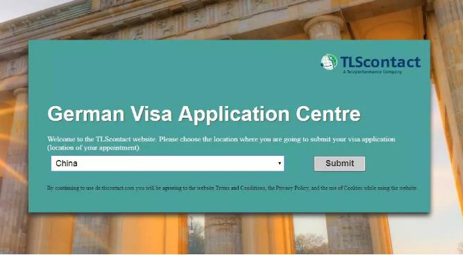 登陆http://de.tlscontact.com,选择您所要提交申请的所在地并点击”Submit”